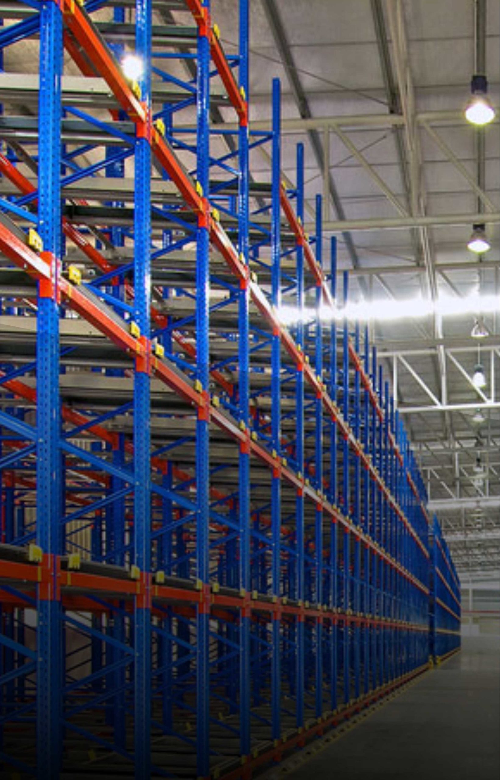 Rak drive-in dan drive-through adalah solusi penyimpanan dengan kepadatan tinggi yang ideal untuk menyimpan barang-barang homogen dalam jumlah besar. Forklift dapat masuk ke dalam rak untuk memuat dan mengambil barang, menghilangkan kebutuhan lorong di antara rak. Rak drive-in hanya memiliki satu akses masuk, sementara drive-through memiliki dua akses, yang memungkinkan pergerakan lebih fleksibel.