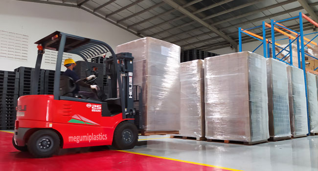 - Contoh: Forklift mengangkat palet yang berisi produk siap jual di gudang.