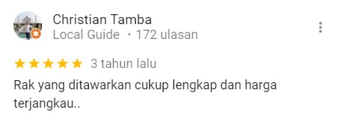 Kami menyadari bahwa harga merupakan salah satu faktor penting dalam pembelian produk rak gudang. Oleh karena itu, kami menawarkan harga bersaing untuk setiap produk rak gudang yang kami jual. Meskipun dengan harga yang terjangkau, kualitas dan mutu produk kami tetap terjamin dan tidak mengurangi fungsinya sebagai rak gudang yang berkualitas.