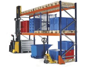 - Drive-In Pallet Racking: Drive-in pallet racking memungkinkan forklift untuk masuk ke dalam rak dan mengakses barang dari dalam. Sistem ini mengoptimalkan ruang penyimpanan karena forklift dapat membawa dan mengambil barang dari lintasan yang sama. Namun, sistem ini lebih cocok untuk produk dengan rotasi yang lebih rendah karena barang yang ditempatkan lebih dalam mungkin lebih sulit diakses.