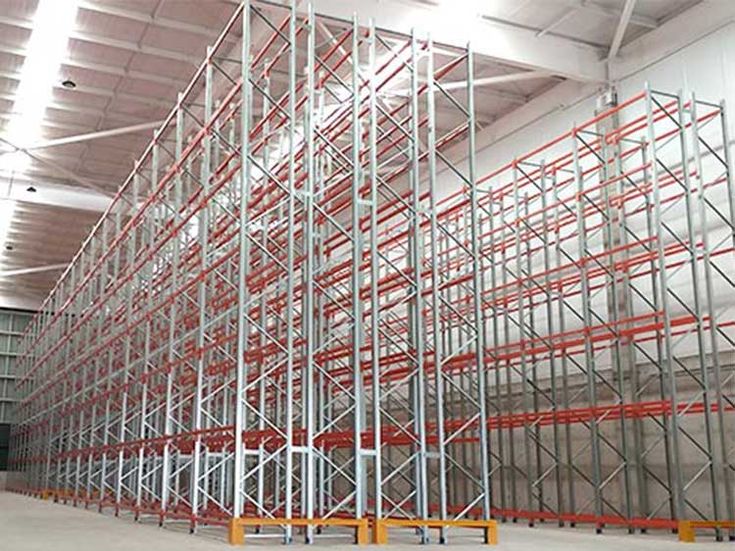 Sistem ini terdiri dari tiang-tiang vertikal yang kokoh dan bingkai rak yang kuat untuk menopang beban palet yang berat.