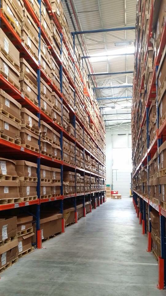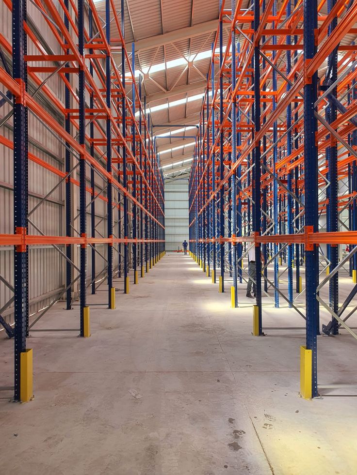 Pusat distribusi menggunakan rak besar heavy duty untuk menyimpan barang-barang yang akan dikirim ke berbagai lokasi. Fleksibilitas dan kapasitas penyimpanan yang tinggi dari rak ini membantu mempercepat proses pengambilan dan pengiriman barang.