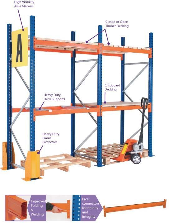 Rak tipe RR-1000 dirancang dengan kapasitas beban sebesar 1 ton per level shelving. Jenis rak ini cocok untuk penyimpanan barang-barang dengan berat sedang dan ukuran besar. Kelebihannya adalah: