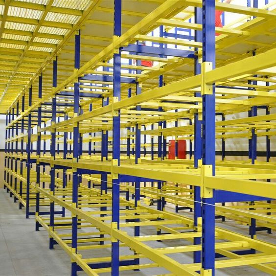 Rak mezzanine adalah solusi yang menambahkan lantai tambahan di atas ruang yang ada di gudang, menggandakan atau bahkan melipatgandakan kapasitas penyimpanan. Rak ini ideal untuk gudang dengan langit-langit tinggi dan ruang lantai terbatas. Mezzanine dapat digunakan untuk menyimpan barang ringan hingga sedang, atau bahkan sebagai area kerja tambahan.